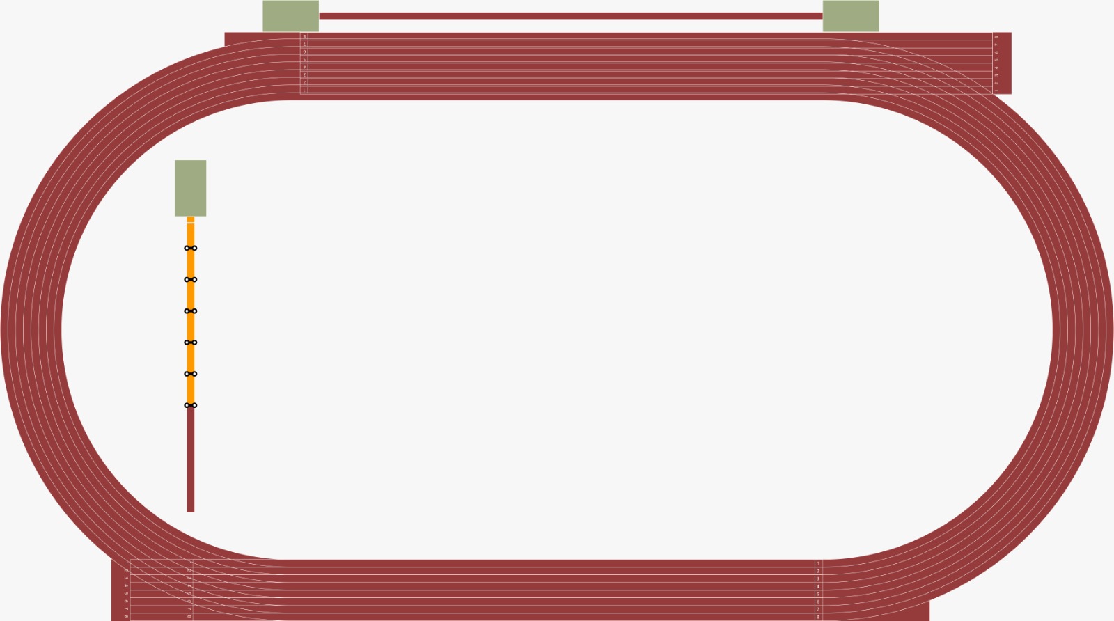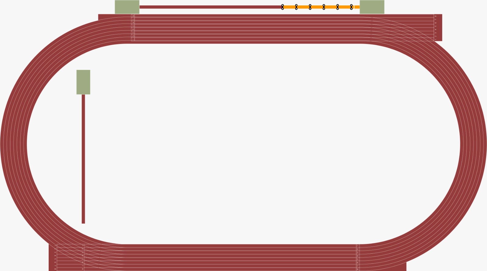 Multi-sport sprint timing setup with key acceleration checkpoints and full 100–110 m sprint coverage for training and testing