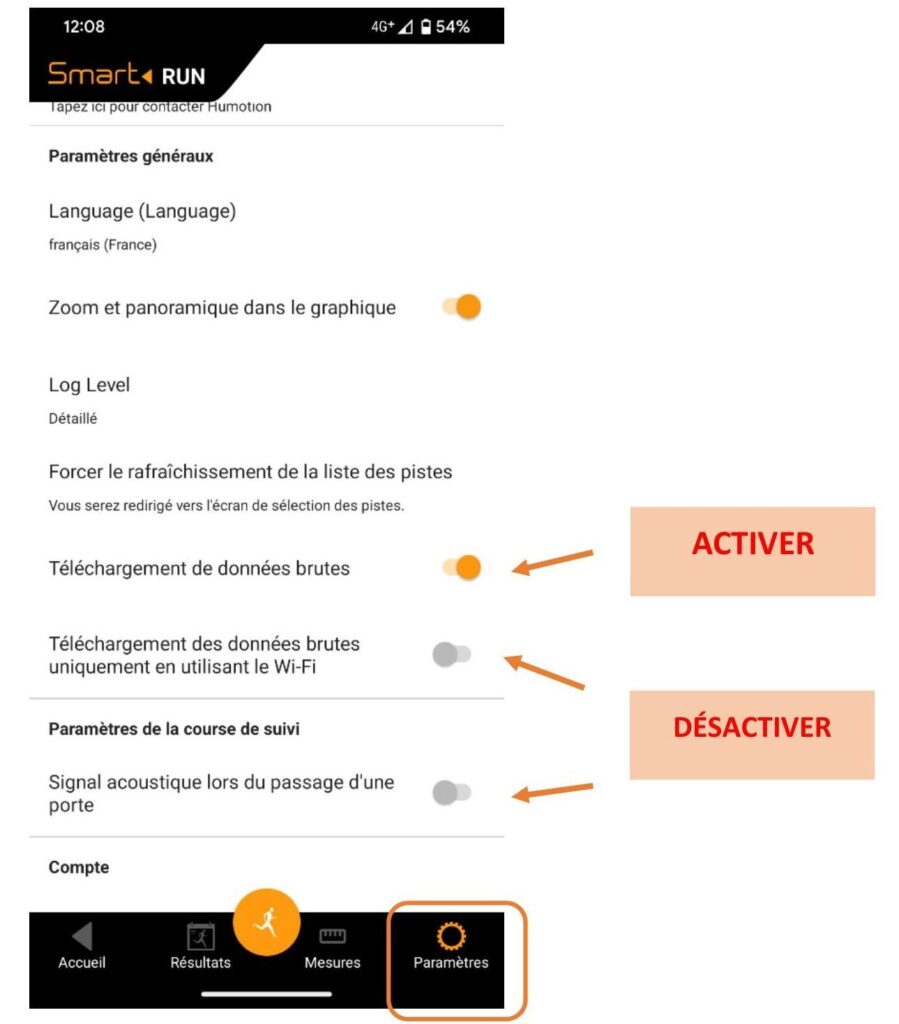 5. Assurez-vous que les paramètres de l’application sont corrects (voir ci-dessous)